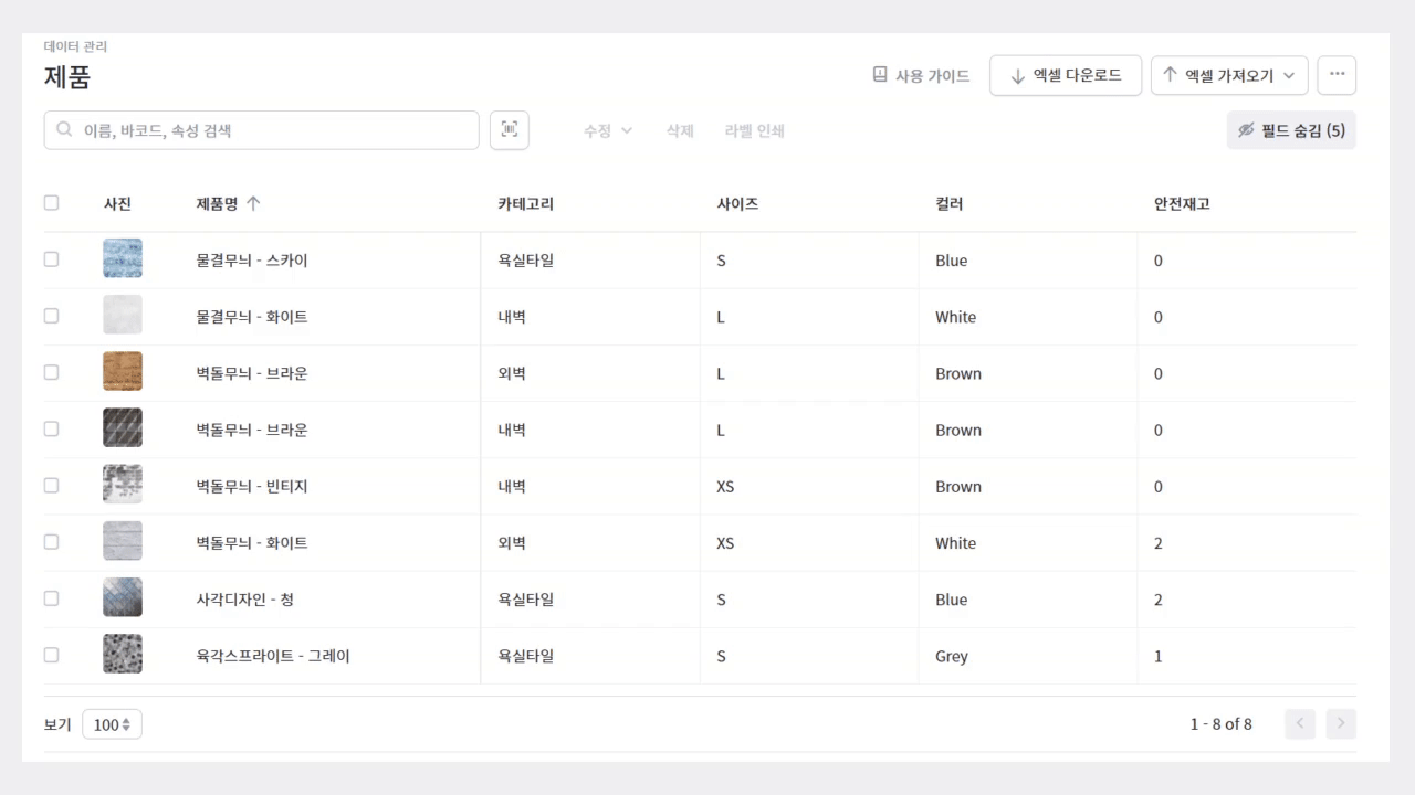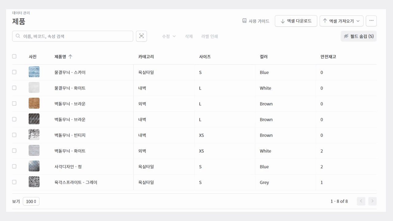 만약 안전 재고 수량을 대량으로 수정해야 할 경우에는 아래 방법을 사용해 주세요.